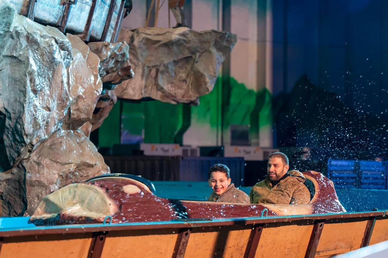 The ride is a quick trip inside a wooden vehicle in the shape of tree trunks, which slides in a stream of water, splashing water on its passengers during its 3-minute journey. Then, it settles down gradually with ease and smoothness.